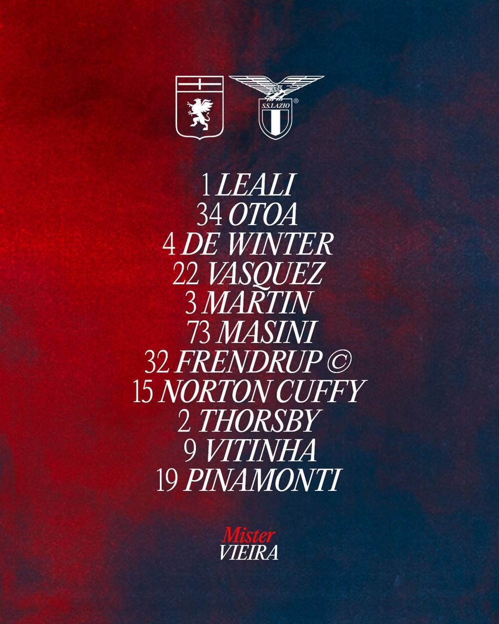 Io discuterei più sullo spostamento in effetti che a noi è costato 4 infortuni e alla Lazio recuperare infortunati e energie. Ayroldi pessimo a prescindere dal rosso che ci può stare su Otoa anche se a mio avviso troppo severo e gestione dei falli a dir poco fantasiosa.
