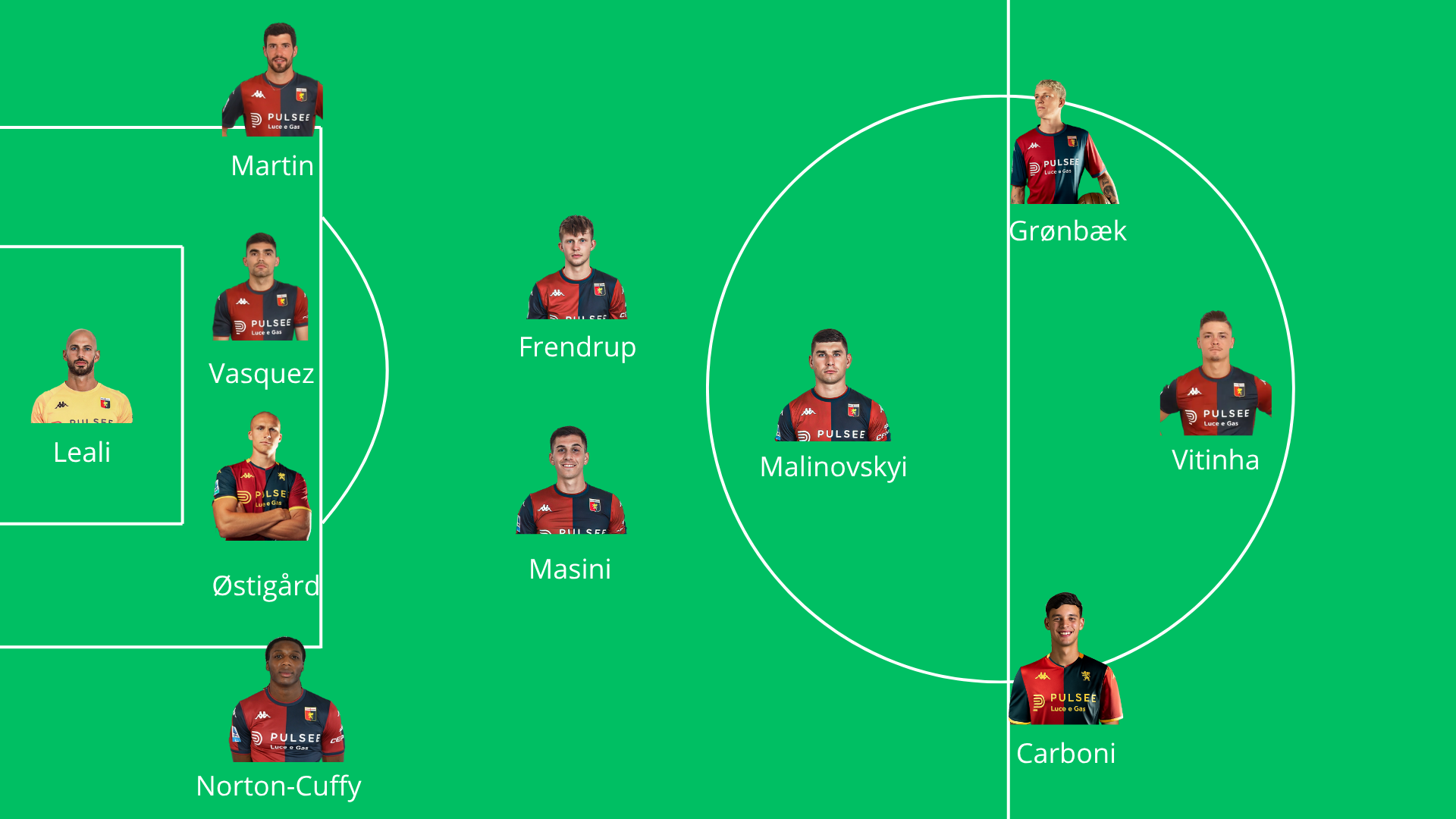 Dalle prime indicazioni delle amichevoli precampionato secondo me questa dovrebbe essere la formazione di base con il modulo 4-2-3-1. Ho messo Mali per Stanciu, anche se mi sembra che al momento la scelta sia stata più sul rumeno, ma a gioco lungo credo che Mali (capocannoniere del precampionato) avrà la titolarità. Così come penso che sarà un ballottaggio non scontato Carboni-Messias.