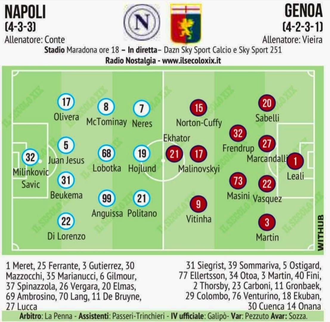 Non penso di dimenticare nessuno, resta in sospeso Cuenca che potrebbe essere liberato dal Genoa rispetto alla scorsa volta quando era stato trattenuto per fare lavoro specifico.